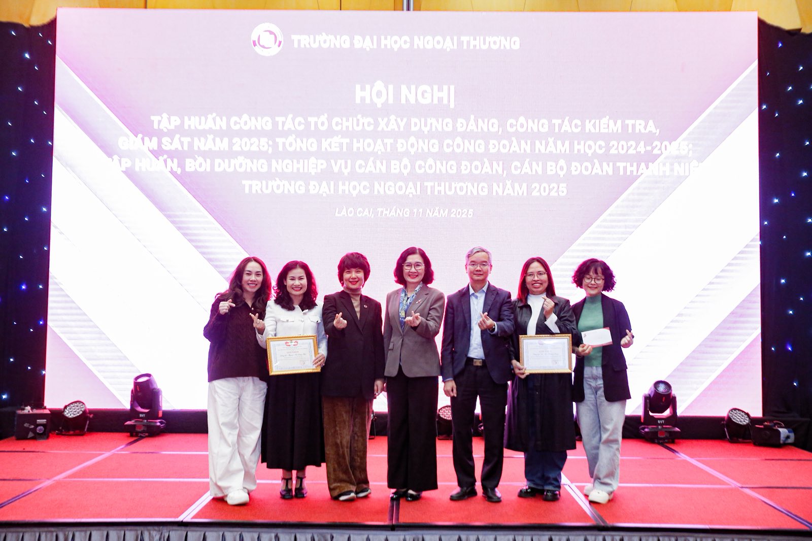 Từ ngày 28/11- 30/11/2025, thực hiện chương trình công tác của Đảng ủy năm 2025, Kế hoạch hoạt động của Công đoàn trường ĐH Ngoại Thương năm học 2024 – 2025, Đảng ủy Trường ĐH Ngoại Thương và Công đoàn Nhà trường đã phối hợp tổ chức Hội nghị tập huấn công tác tổ chức xây dựng Đảng, công tác kiểm tra, giám sát năm 2025; Tổng kết hoạt động Công đoàn năm học 2024 – 2025; Tập huấn, bồi dưỡng nghiệp vụ cán bộ Công đoàn, cán bộ Đoàn Thanh niên trường ĐH Ngoại Thương năm 2025 tại Tỉnh Lào Cai.
